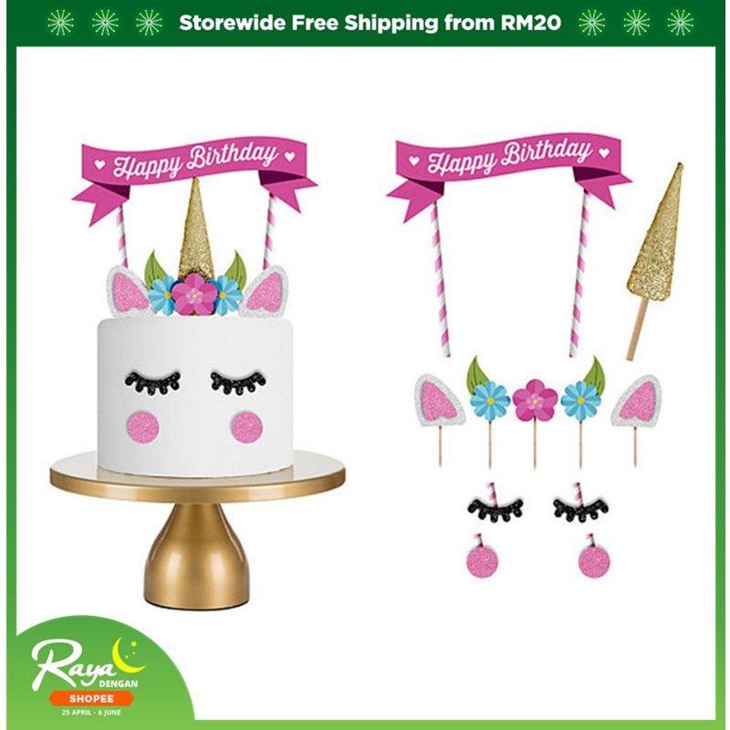 1set Cute Unicorn Cake Topper Happy Birthday Candle Party Toppers